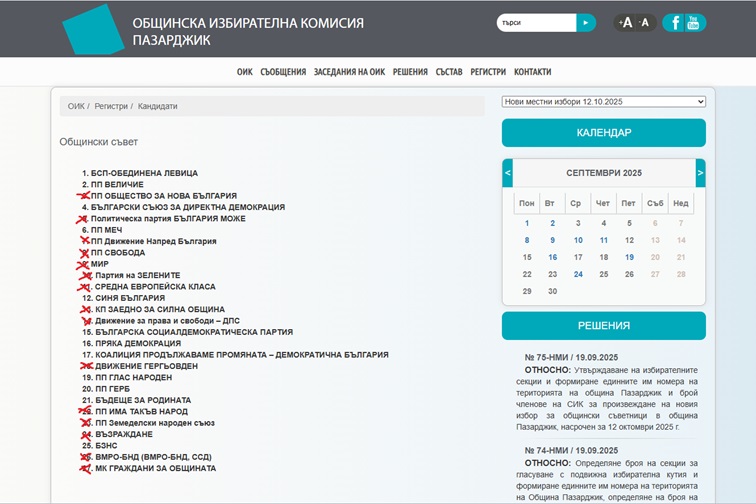 На 12 октомври 2025 г. в изборите за Общински съвет ще участват 27 различни партии и коалиции! В 15 от тях има предположения, че са опит на други партии да вкарат свой представител и да сфoрмират мнозинство при гласуване на ключови проекти за Пазарджик.