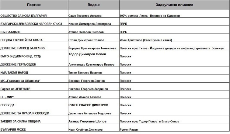 Общото е, че реалната власт не е е ръцете на официалните водачи на листите, а при скритите покровители.